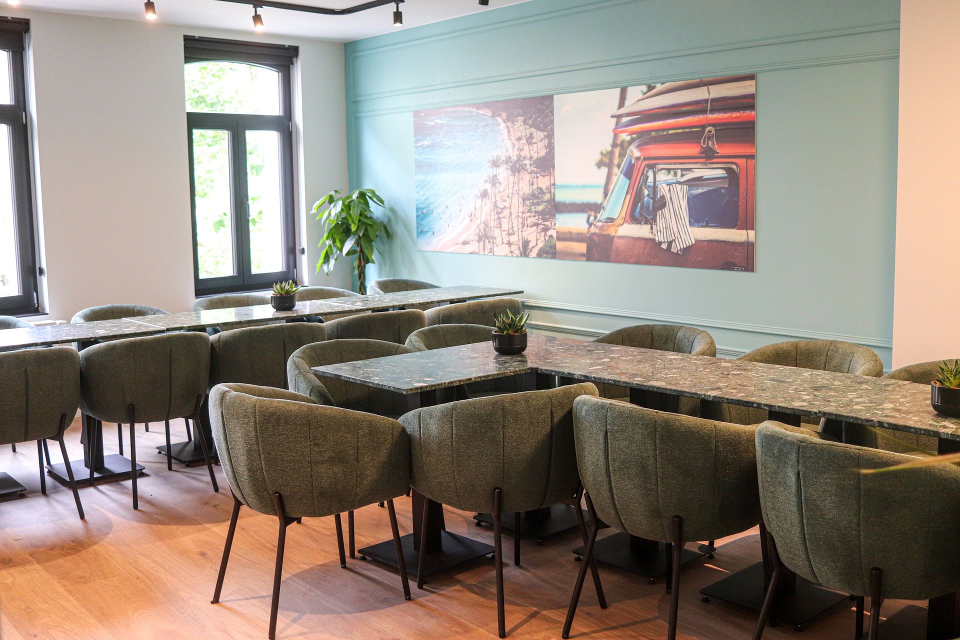 En journée ou en soirée, vous pouvez réserver cet espace privé pour un maximum de 24 personnes. Pour les groupes plus importants, notre restaurant peut également être réservé.